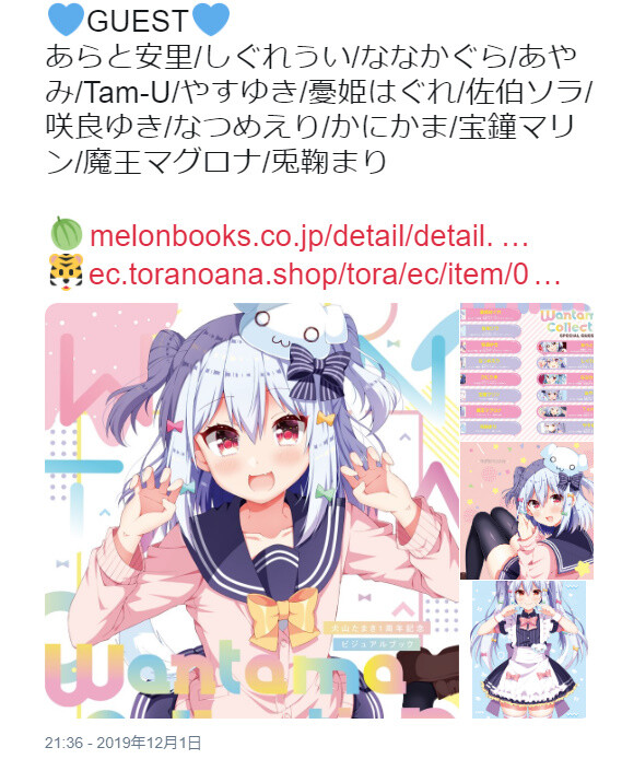 あらと安里/しぐれうい/ななかぐら/あやみ/Tam-U/やすゆき/憂姫はぐれ/佐伯ソラ/咲良ゆき/なつめえり/かにかま/宝鐘マリン/魔王マグロナ/兎鞠まり