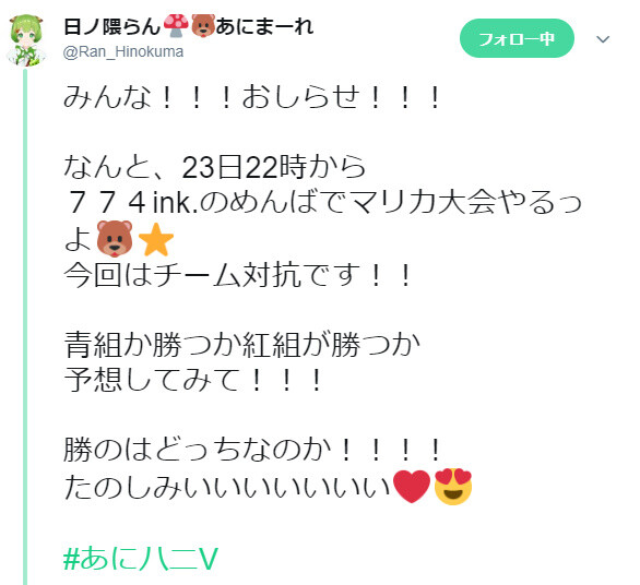 774ink.のめんばでマリカ大会やるっよ🐻⭐️
