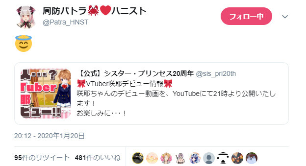 — 周防パトラ🦀❤️ハニスト (@Patra_HNST) January 20, 2020