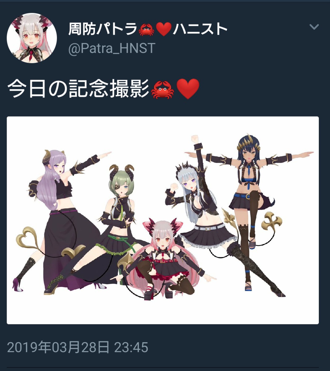 — 周防パトラ🦀❤️ハニスト (@Patra_HNST) 2019年3月31日
