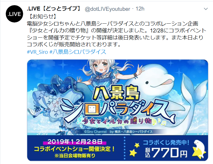 11月22日15:03 カテゴリ:ニュース電脳少女シロ コメント数:8 コメント 【.LIVE】シロちゃんのぬいぐるみ発売&八景島シーパラダイスとのコラボ決定!怒涛のお知らせの間に小峠教官が女装してて草。【電脳少女シロ・Vtuber】 513 名前:Vチューン!掲示板から:2019/11/21 17:01:13 ID:msAAng05Xuぬいぐるみだと……!.LIVE【どっとライブ】@dotLIVEyoutuber【お知らせ】 この度『電脳少女シロ&シロぐみさん ぬいぐるみセット』の発売が決定いたしました。どっとライブのBOOTHサイト ( https://t.co/wnxIl4ZRmY ) にて本日のシロ生放送終了後より販売開始予定です… https://t.co/BGsigX1hzm2019/11/21 17:00:00 タグ :#八重沢なとり
